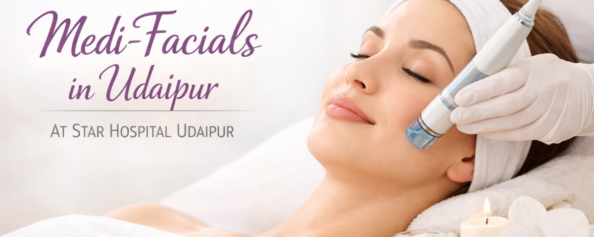 स्टार हॉस्पिटल उदयपुर में विभिन्न प्रकार के मेडी फेशियल उपलब्ध हैं जो अलग-अलग त्वचा समस्याओं के लिए उपयोगी हैं