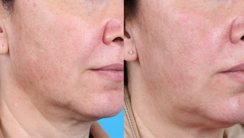 Initial skin improvement can be seen within 2–3 weeks, while optimal results develop gradually over 2–3 months as collagen production increases.