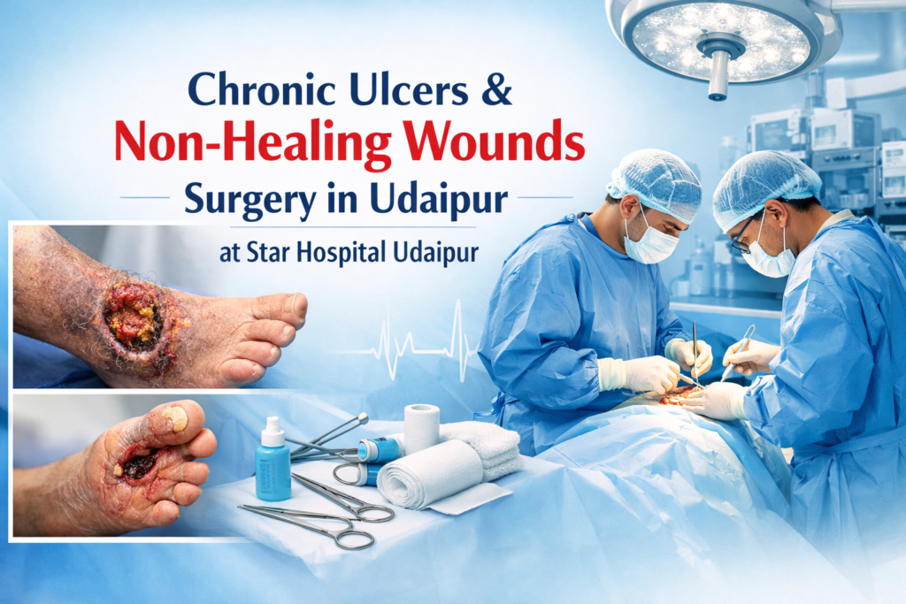 Chronic Ulcers and Non-Healing Wounds are one of the most challenging medical conditions affecting people of all ages, especially those with underlying health issues. When a normal wound fails to heal within an expected time frame, it turns into a long-term problem that can affect quality of life, mobility, and overall health. Chronic Ulcers and Non-Healing Wounds often start as small injuries but gradually become severe if not treated properly. These wounds require timely attention, proper care, and understanding of the underlying causes. Chronic Ulcers and Non-Healing Wounds surgery in Udaipur at Star Hospital Udaipur is available for advanced treatment and specialized care, helping patients recover with proper medical supervision.